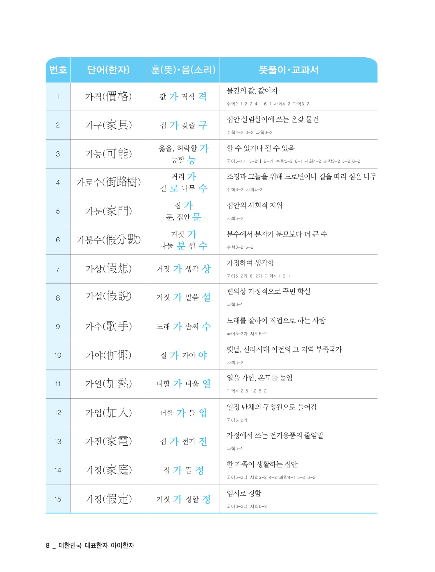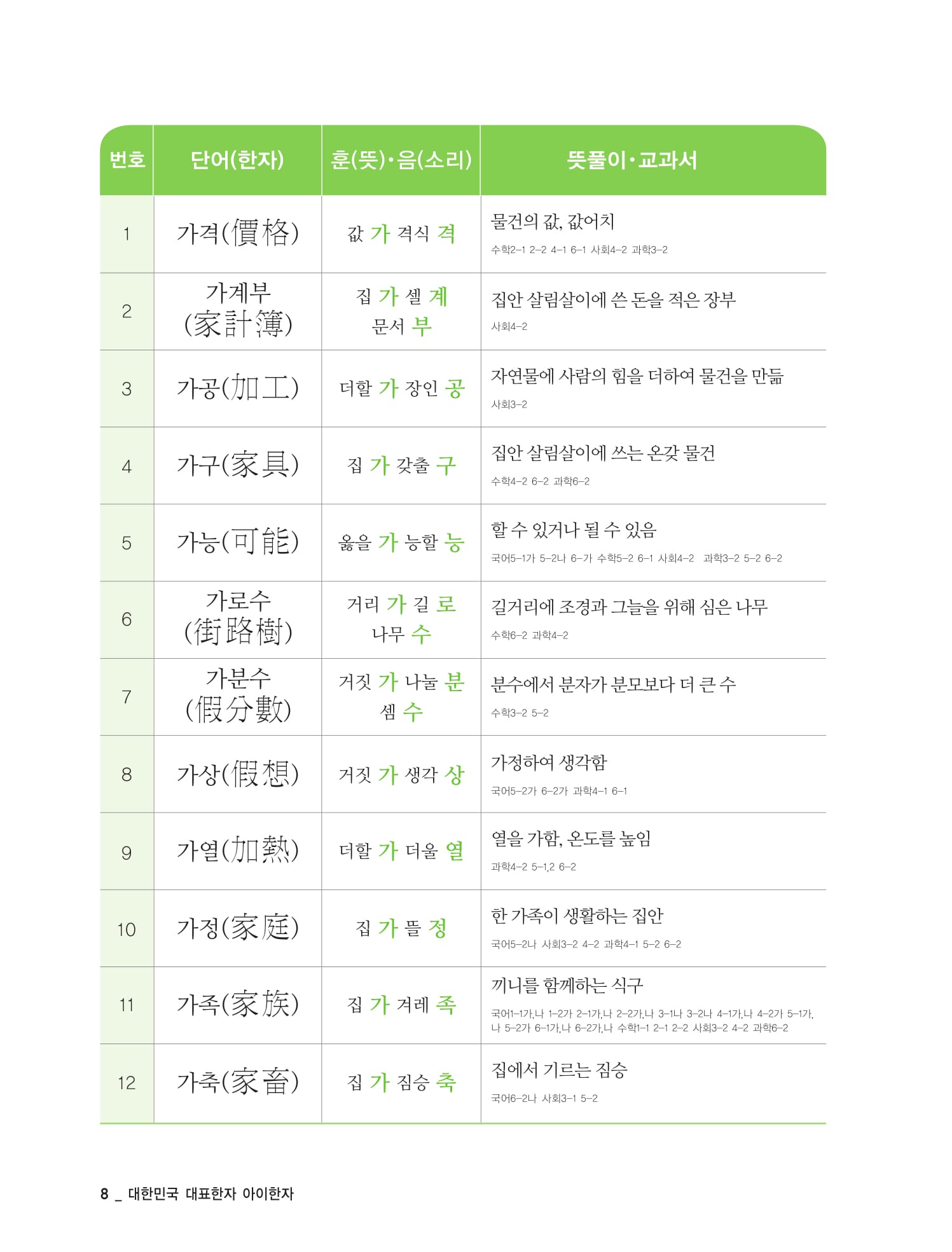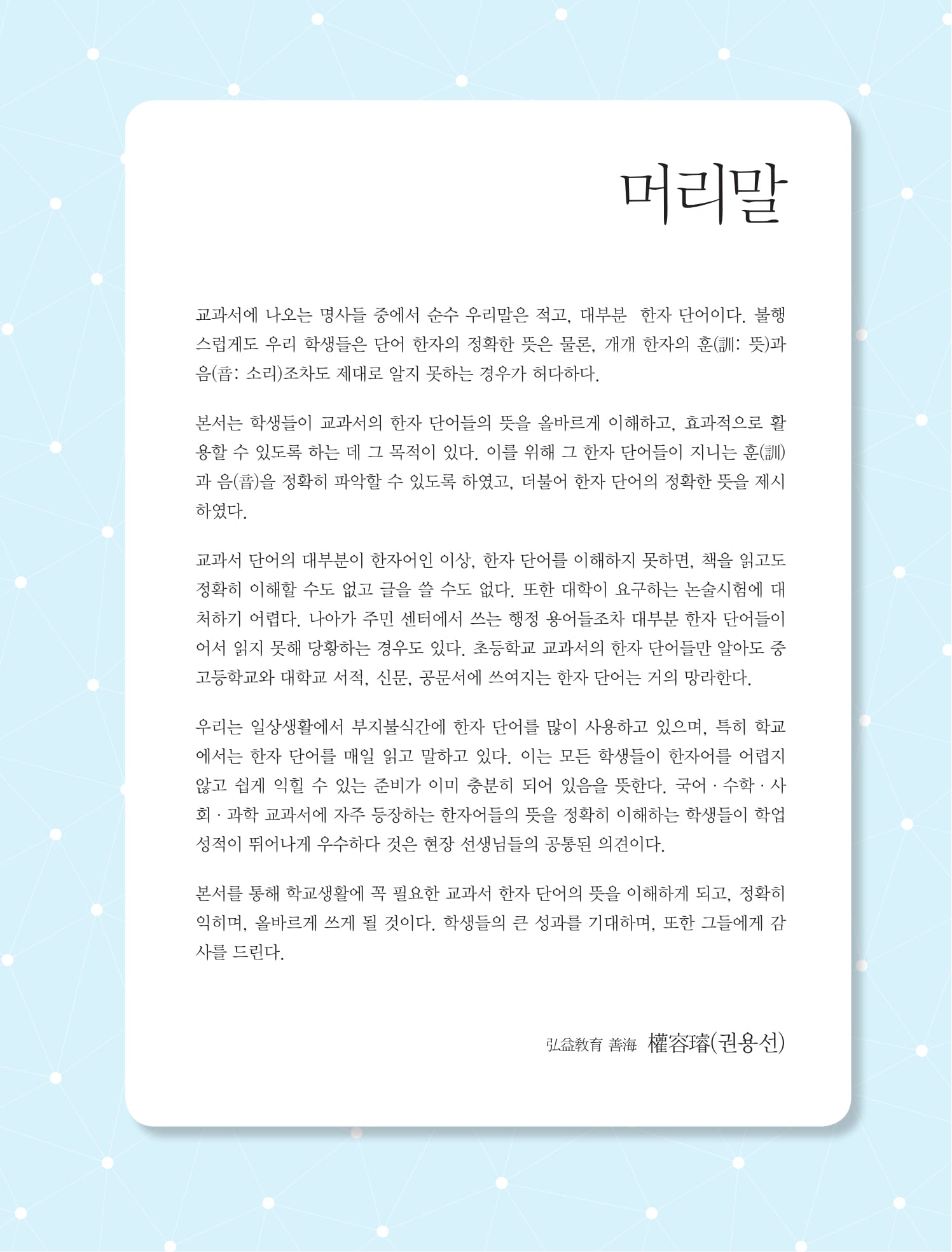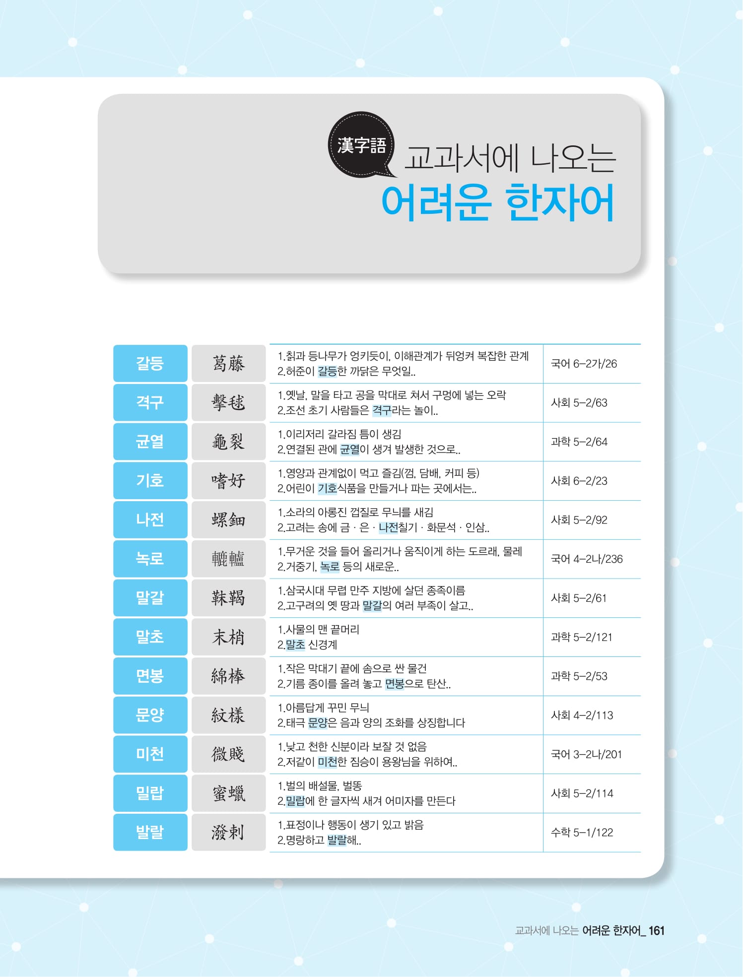 ∎전 학년(1∼6학년) 총 52권 교과서(국어‧수학‧사회‧과학)에 나오는 한자 단어 수록