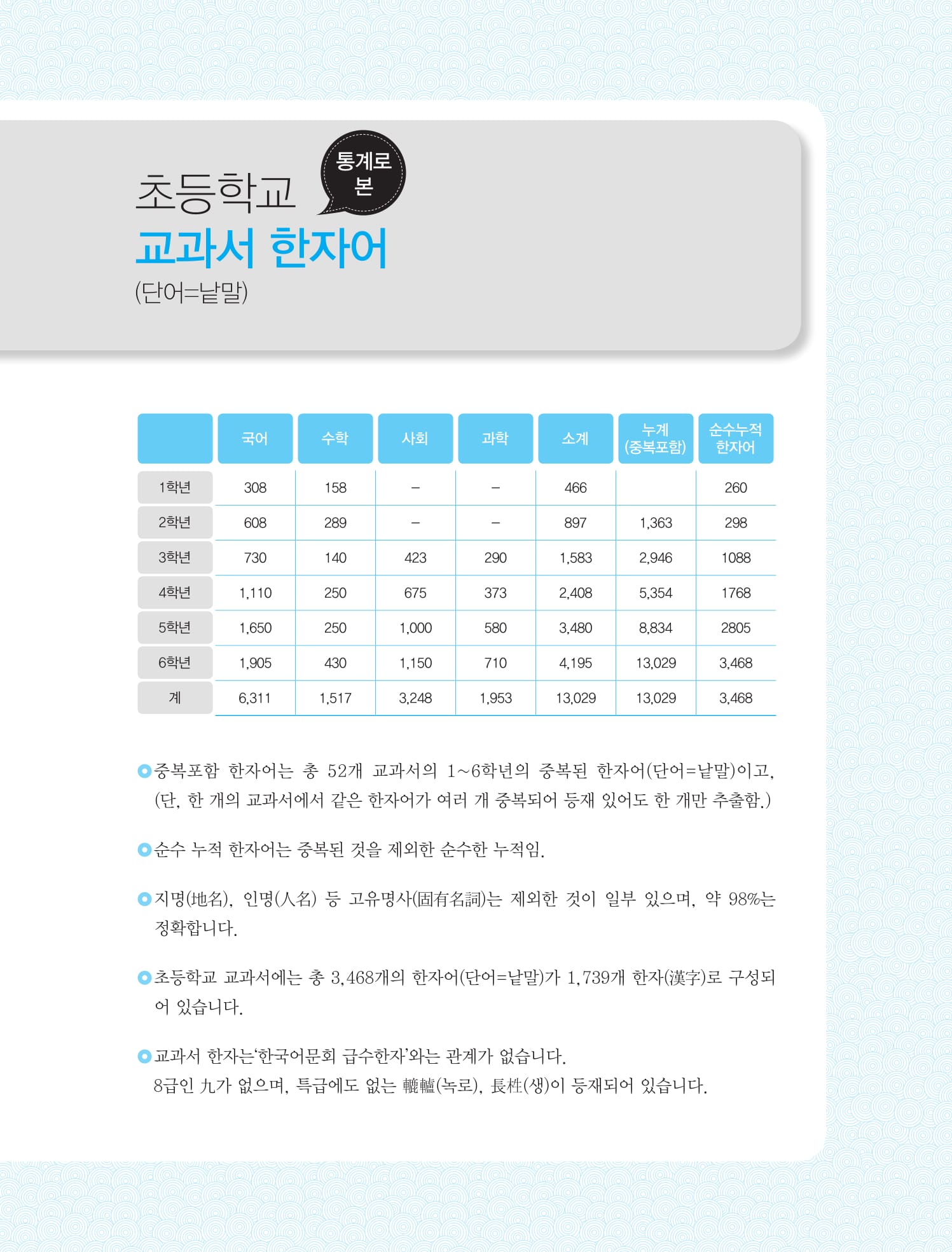 ∎초등학교 전 학년 교과서 한자 단어 3,468개 수록(중복은 제외)