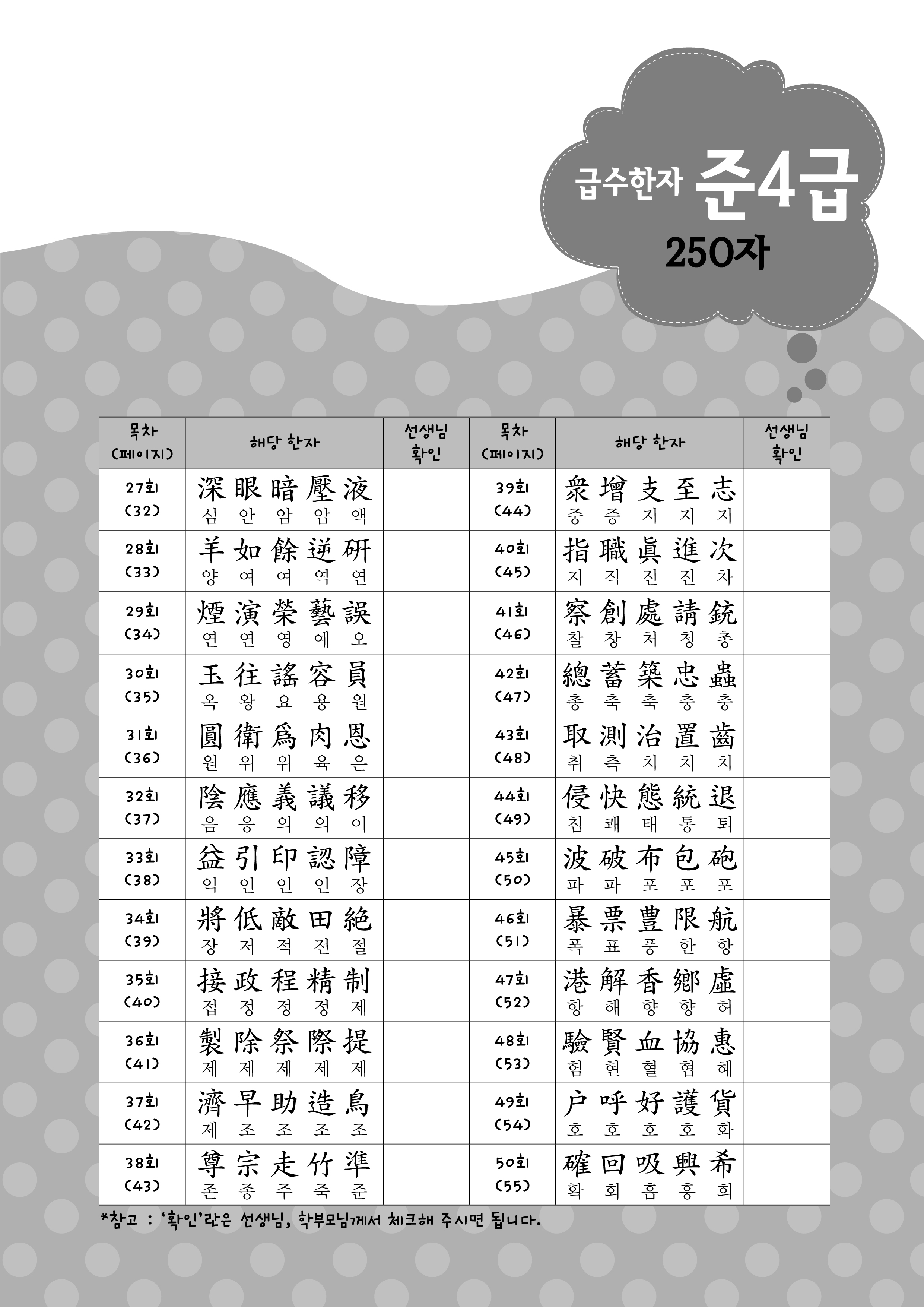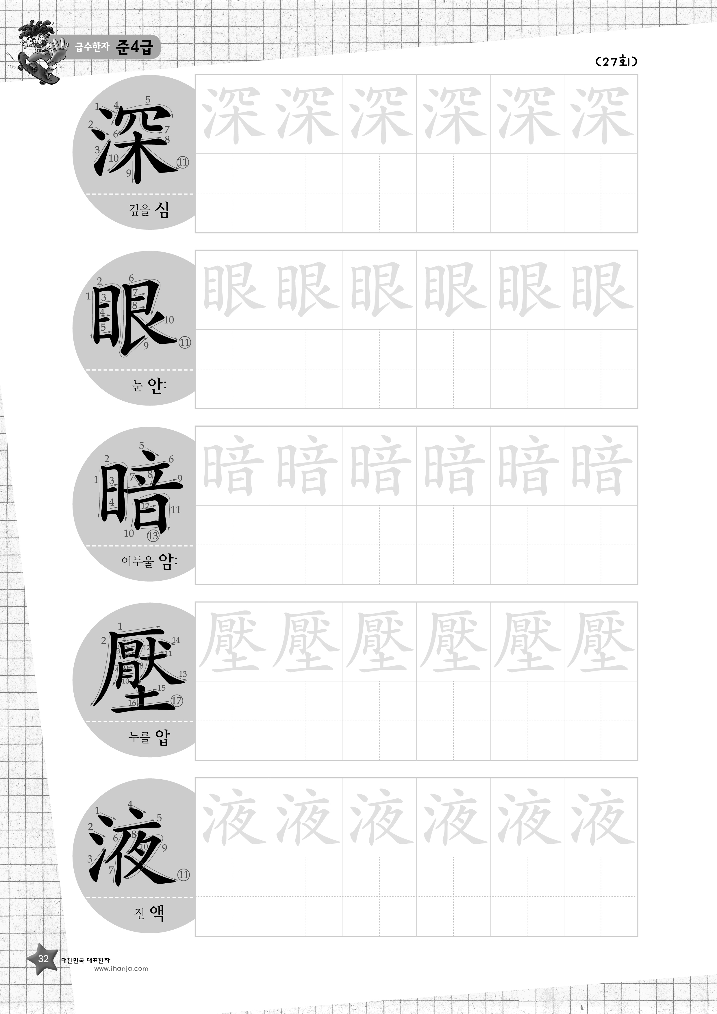 -준4급에서 4급까지 획순 익히기 500字 수록