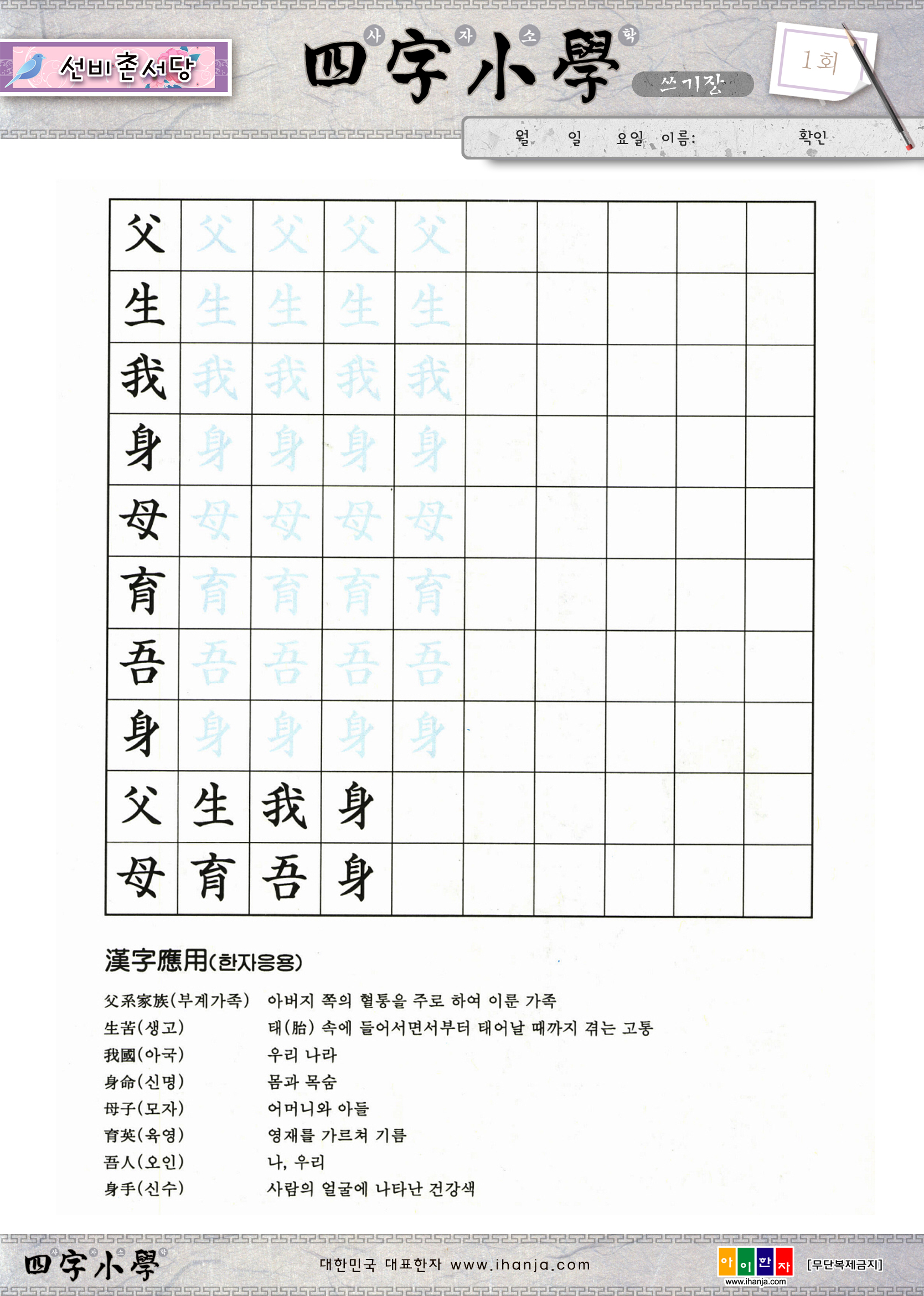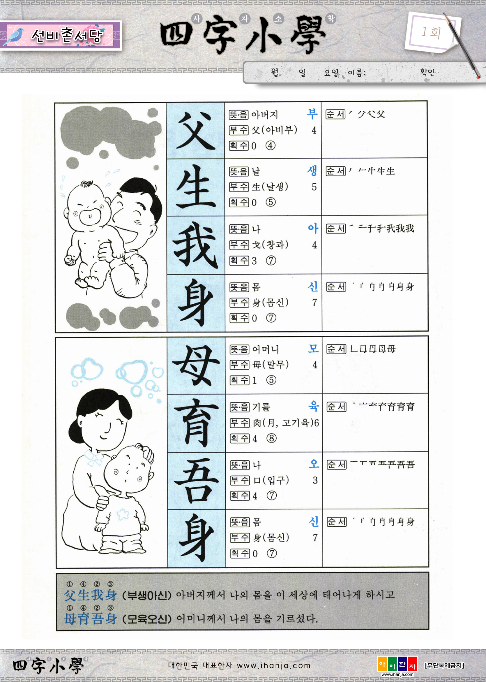 -사자소학(본문+쓰기장) : 1회 - 112회
