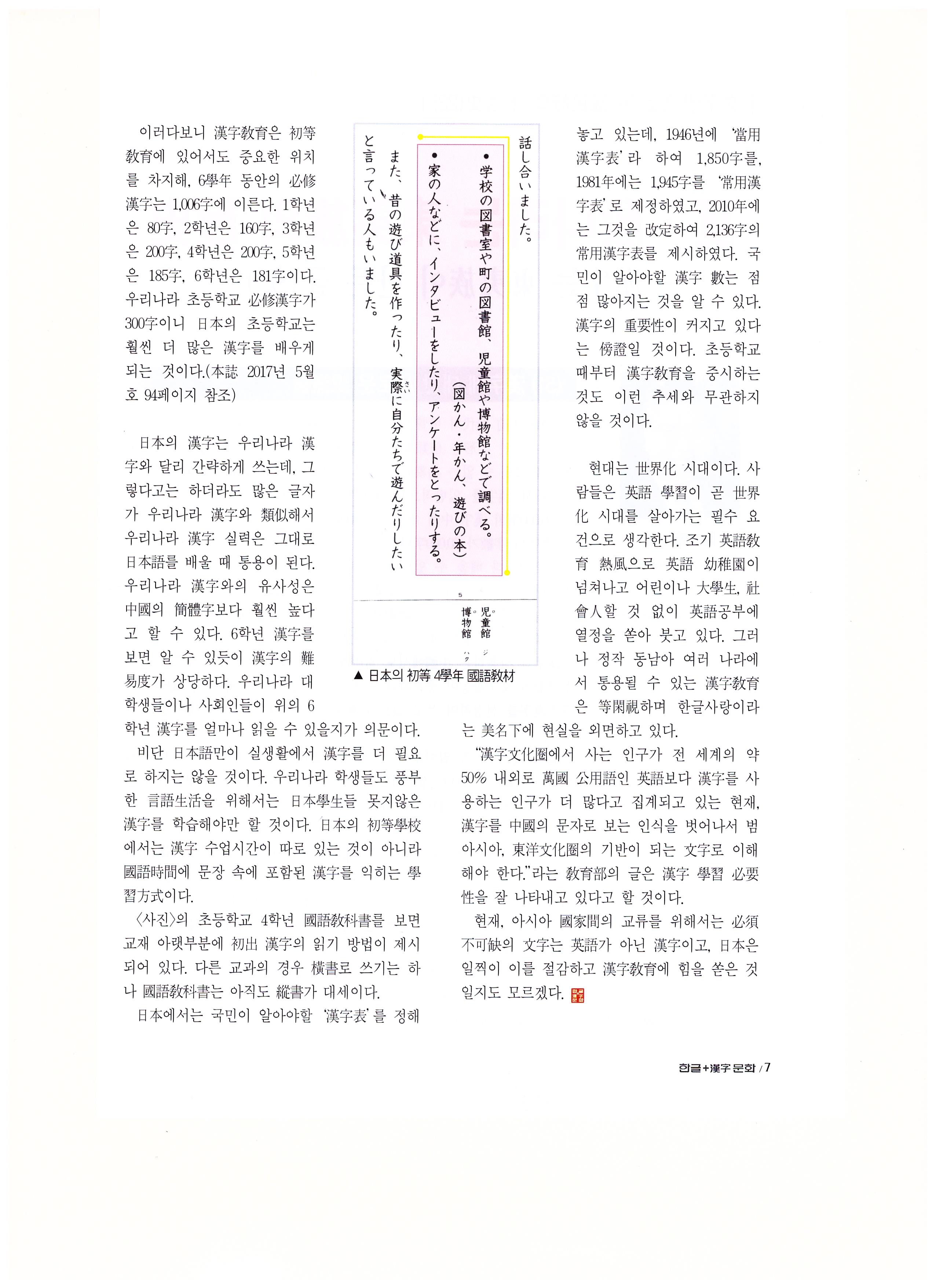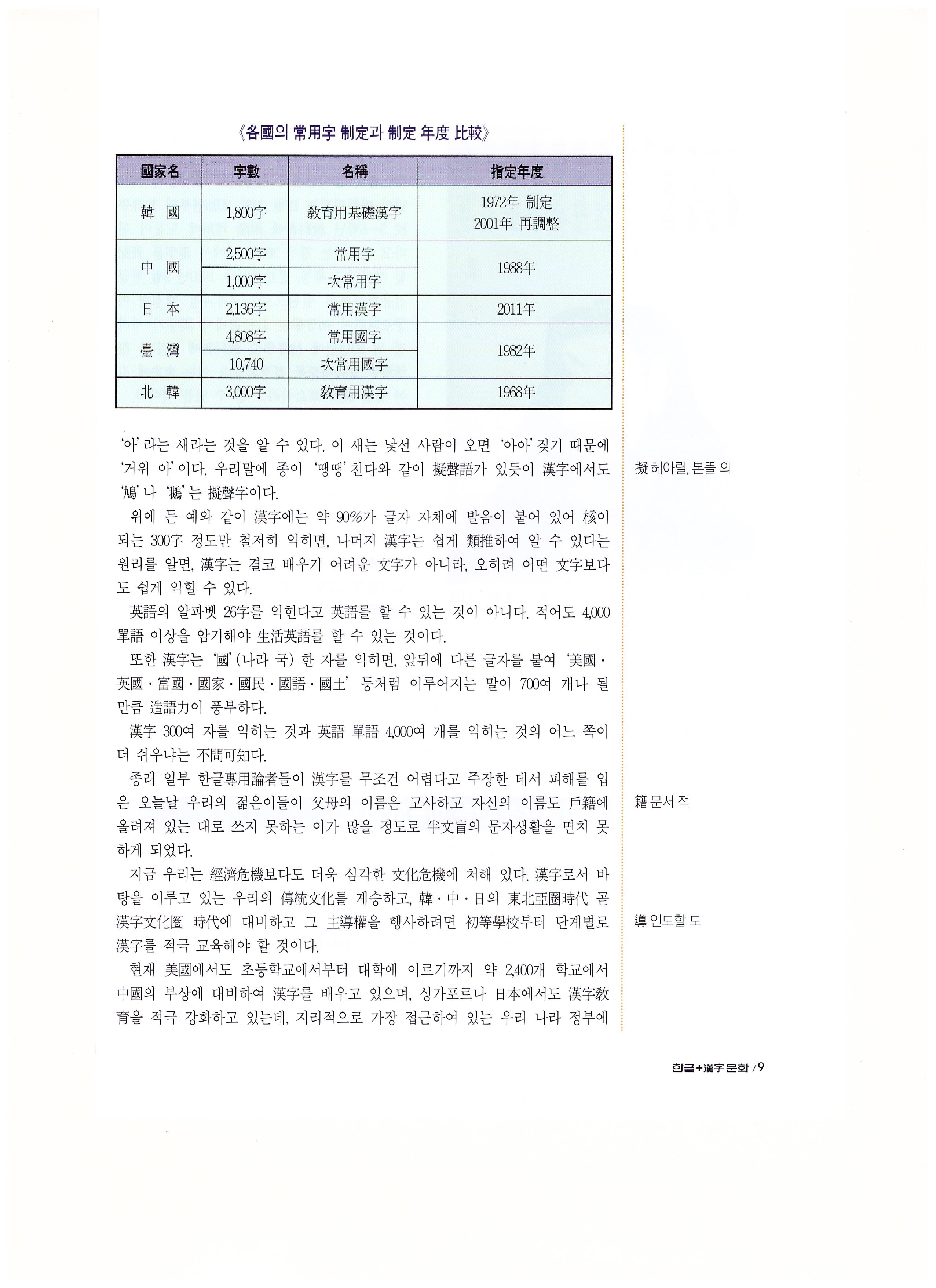 일본 학생들 한자 학습 및 동남아 각국의 상용자 제정 등