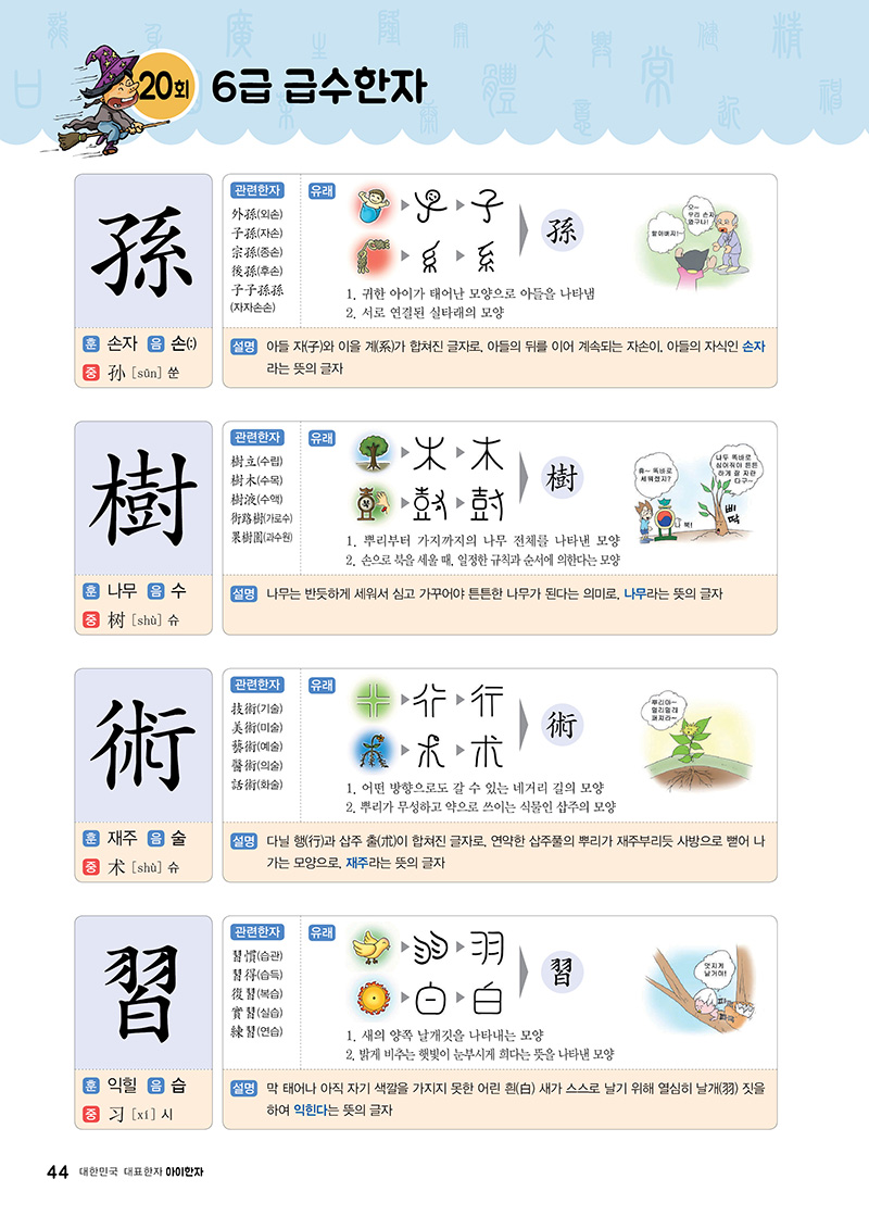 •해당 한자를 유래 과정, 유래 그림으로 설명