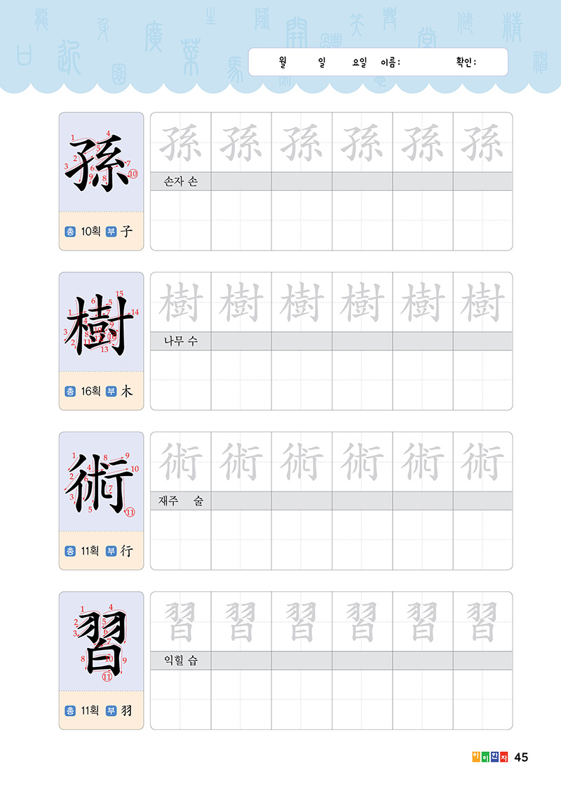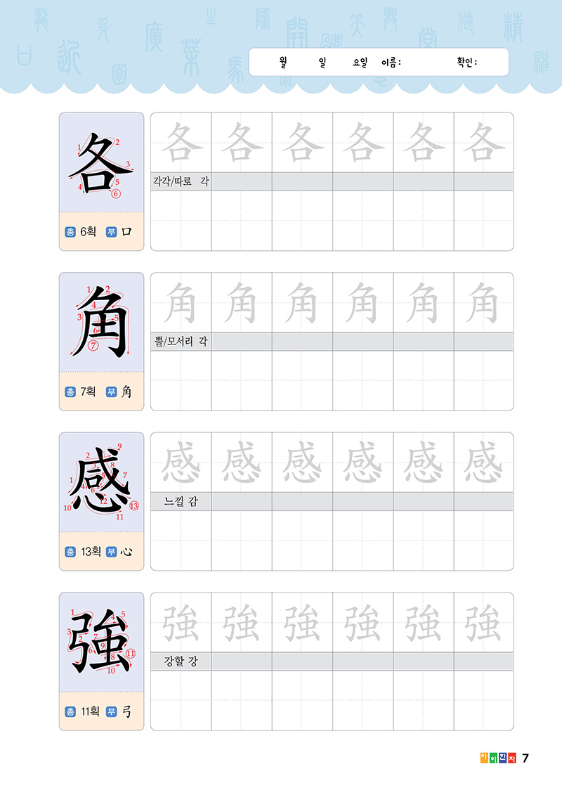 •한자 획순 보고 따라쓰기