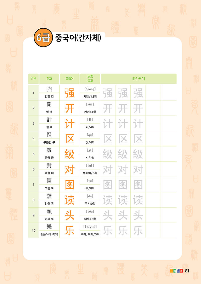 •중국어 한자, 병음, 중국어 간체자 따라쓰기