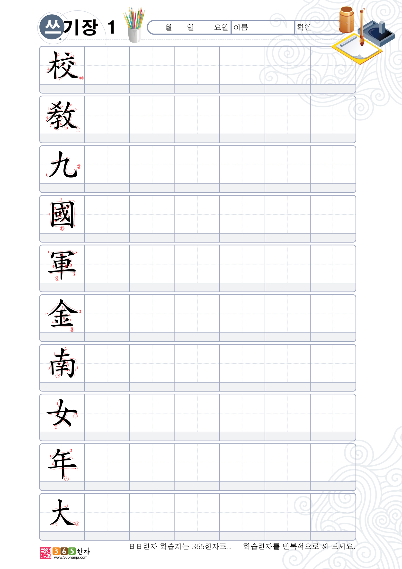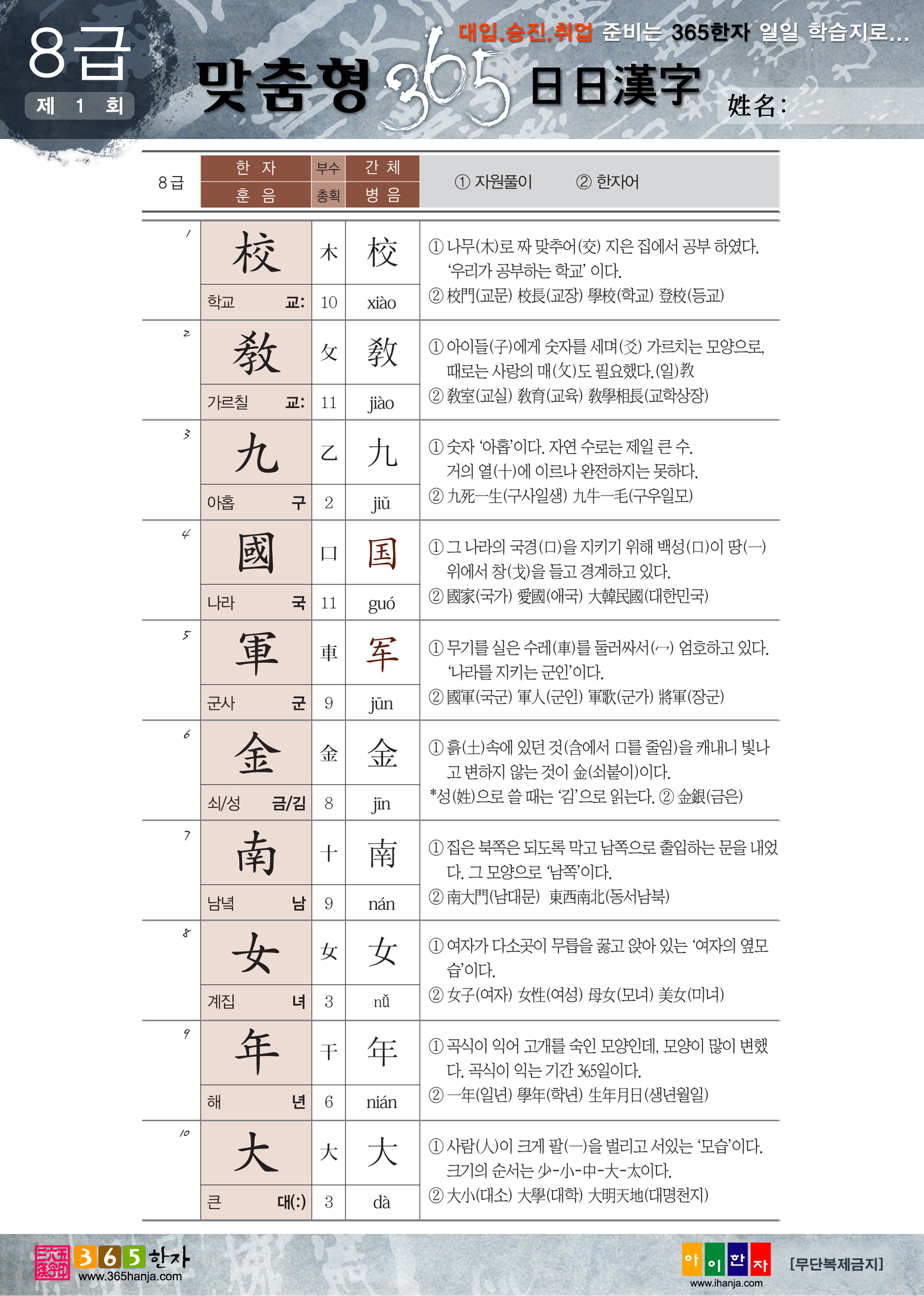*참고 : 온라인 급수한자에서 365한자(8급-1급)를 참고하여 학습하시길 바랍니다.