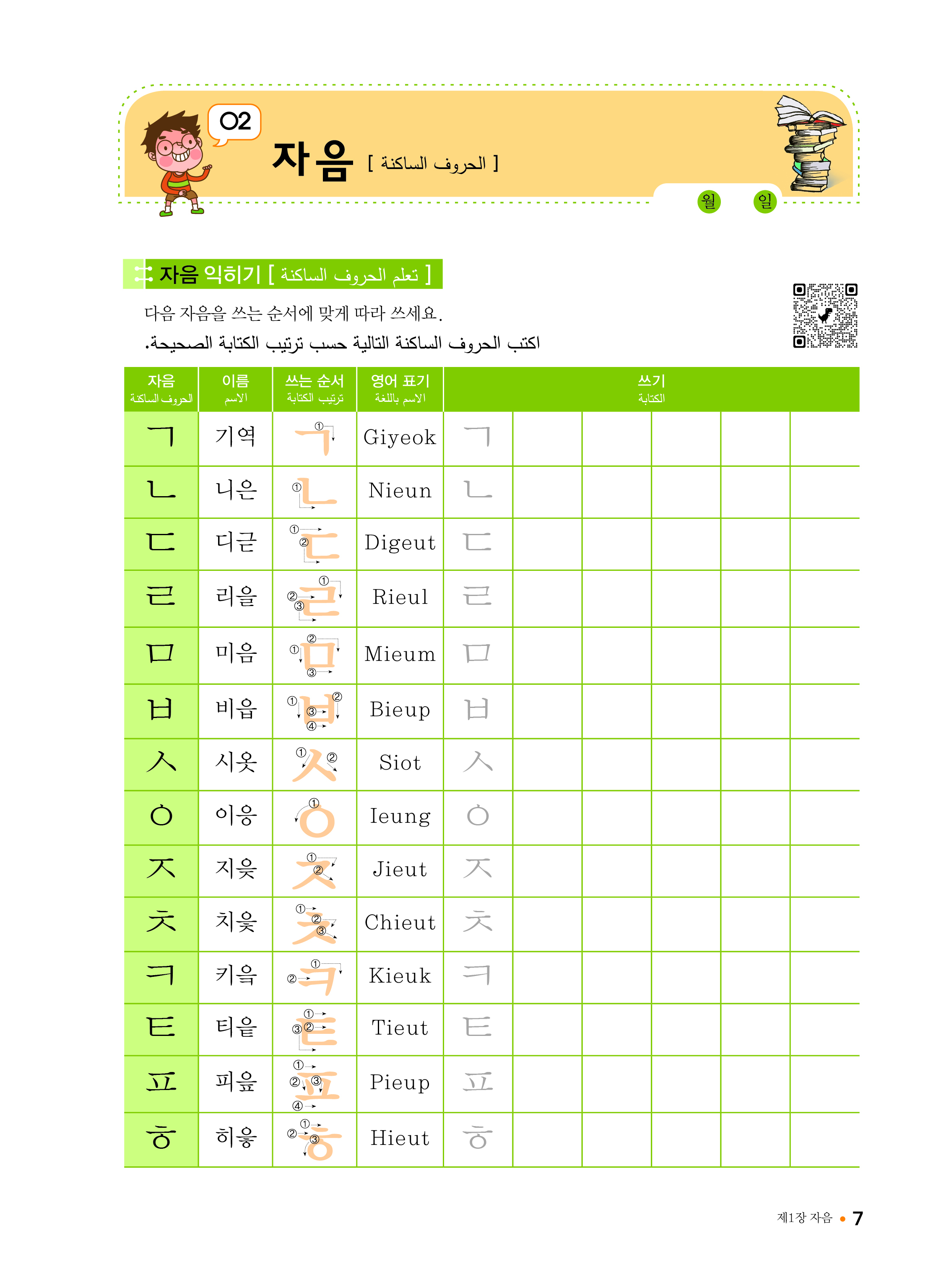 이번에 '아랍어를 사용하는 국민을 위한 기초 한글 배우기 1호 기초편'을 위와 같이