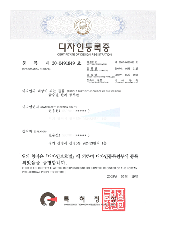 디자인등록증(급수별 한자 공부판)